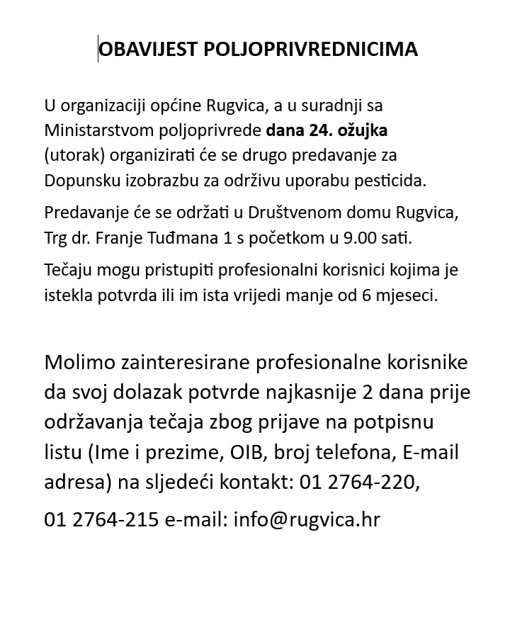Obavijest poljoprivrednicima